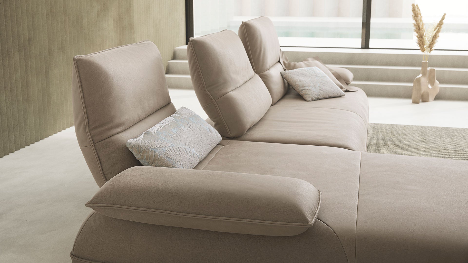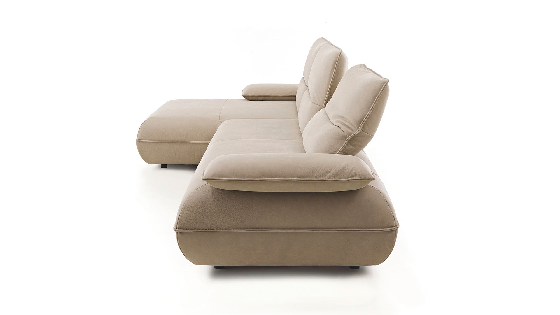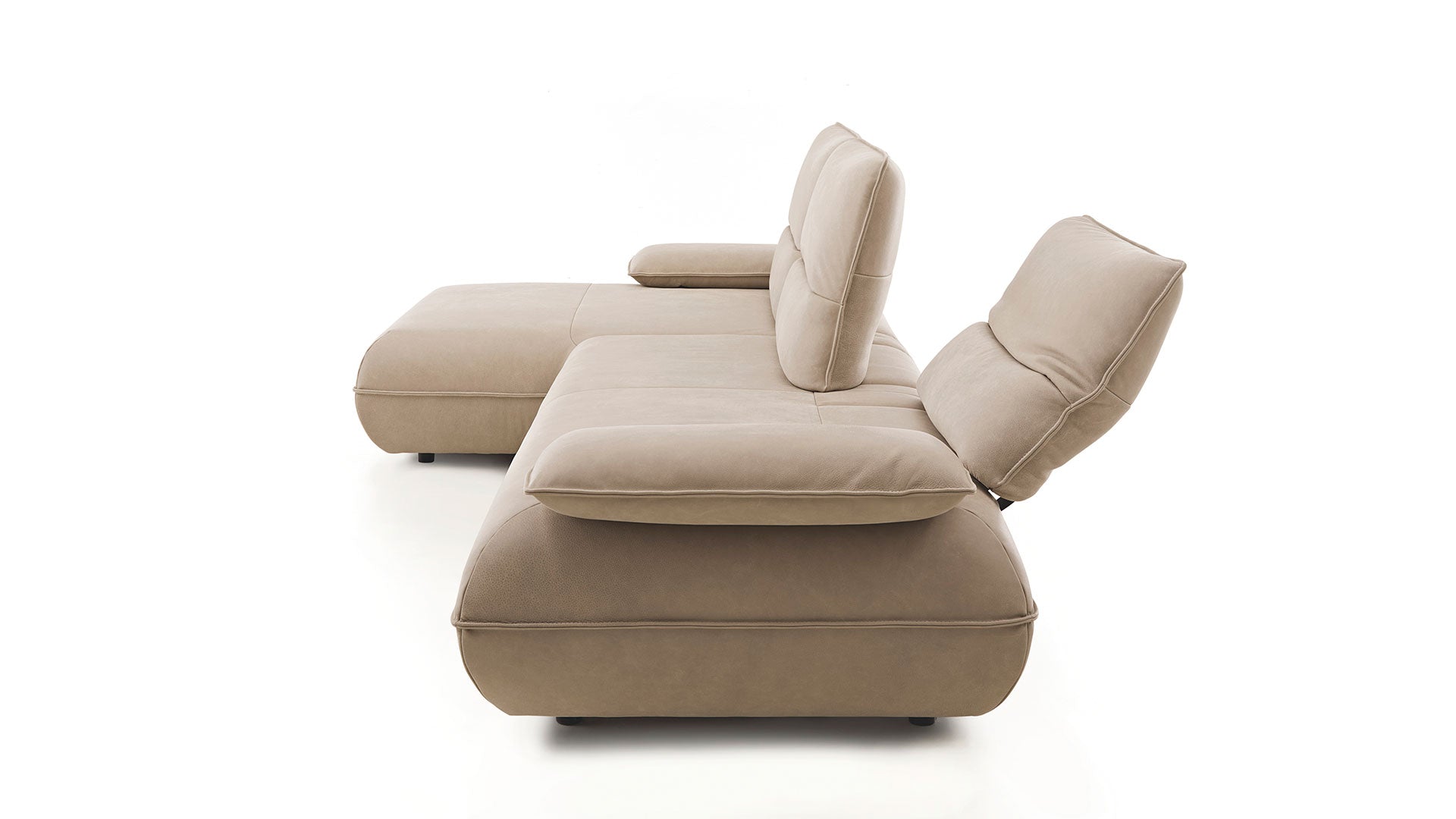 Manually adjustable armrests let you create your perfect lounging angle. Headrest adjustment via grid fitting allows smooth changes in head and neck support. Independently adjustable backrest offers flexible reclining separate from the headrest.
