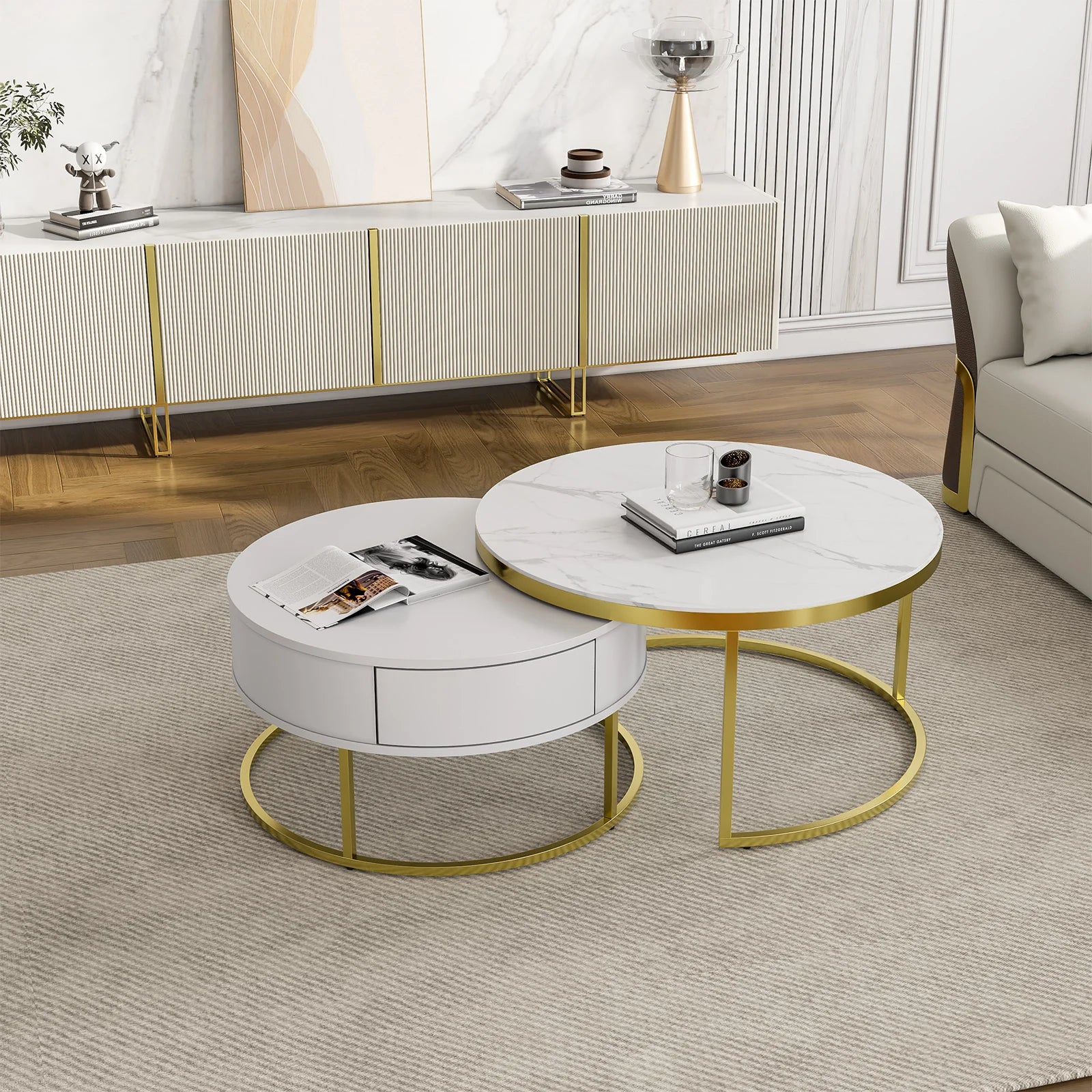 The nesting structure offers flexible arrangement options, perfect for compact living spaces.